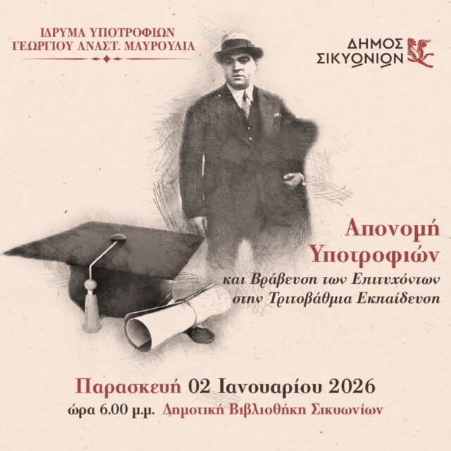 Δήμος Σικυωνίων: Σήμερα η απονομή Υποτροφιών του Ιδρύματος «Γεώργιος Αναστ. Μαυρούλιας» Τοπικά Νέα | 2 Ιανουαρίου, 2026